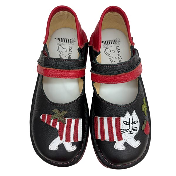 “happy”と出会うための靴〈エスタシオン〉は、カラフルな色の革パーツをパッチワークのように組み合わせたり、かわいいモチーフを付けたり、見た目にとても楽しい靴。足裏が疲れにくいクッションを使用した、ソールのやさしい感触も特長です。