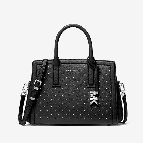 オンでもオフでも活躍する「LAILA(レイラ) スタッドレザー サッチェル スモール」。かっちりとしたフォルムが特徴で、毎日の必需品を持ち歩くのにちょうどよいコンパクトなサイズです。クロスボディーショルダーストラップを調節してぴったりのフィット感に。