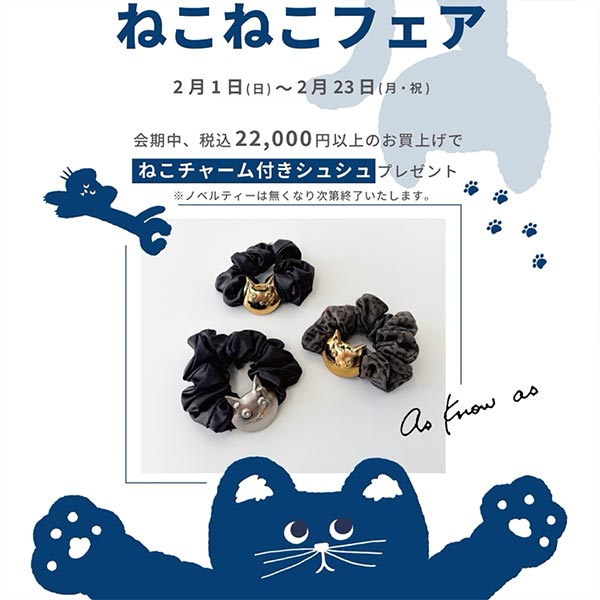 税込22,000 円以上お買上げで「ねこチャーム付きシュシュ」プレゼント!