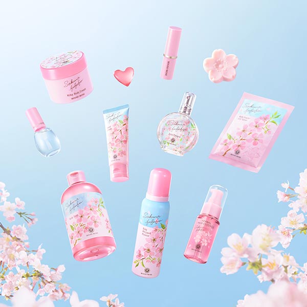 春の凛とした空気に漂う、生花のみずみずしくほのかな甘さがやさしく香る『さくらふふふ』ボディーケアシリーズです。