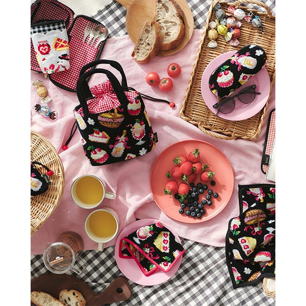 真っ赤なストロベリーのサンドウィッチとチーズケーキ。見ているとお出かけしたくなる大人可愛いデザインのラインアップです。