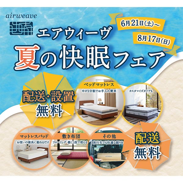 〈エアウィーヴ〉は体圧分散に優れ復元性が高く、寝返りが楽に行えることで熟睡をサポートする寝具です。また、通気性も抜群で中身まで洗えます。