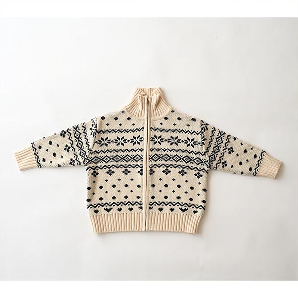 フロントファスナーで着脱簡単なため寒暖差のある季節にも便利なアイテム。また、冬らしいノルディック柄とハイネックスタイルで首元のあたたかさと季節感を演出。肌触りの良い素材が快適な着心地です。