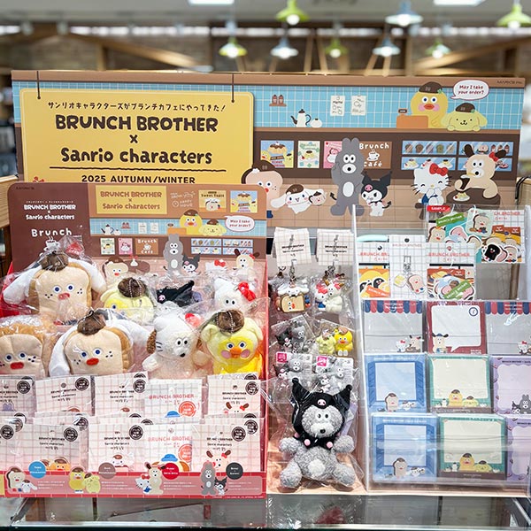 韓国のゆるかわキャラクター〈ブランチブラザー〉と〈サンリオキャラクターズ〉がコラボ!〈ブランチブラザー〉のキャラクターたちが集まる『ブレッディビレッジ』にある“ブランチカフェ”に〈サンリオキャラクターズ〉が登場しました。大人も手に取りやすい落ち着いた色合いのキャラクターグッズが集いました。