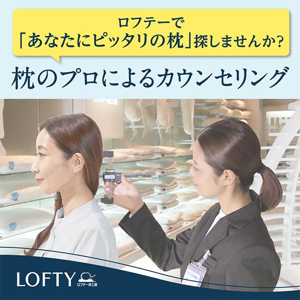 枕選びのプロであるピローフィッターが、あなたにぴったりな枕選びをサポート。最高の枕に出会えるよう、枕はもちろん睡眠についても厳しい試験を受けてきたスタッフがお客様の睡眠環境やお悩みごとを丁寧にカウンセリングいたします。