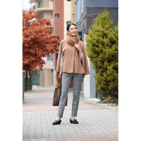 細見えシルエットで、大人の上品さ漂うマットな質感のストレッチダウン。ファーとレザーの部分使いがラグジュアリー感を演出。