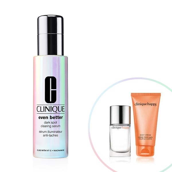 期間中、〈クリニーク〉の美容液を含む税込22,000円以上お買上げの方に、クリニーク ハッピー フレグランス(30ml)&クリニーク ハッピー ボディクリーム(75ml)をプレゼント!