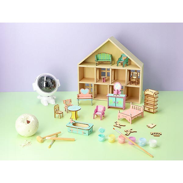 大人も夢中になれる木製のミニチュア家具やドールハウスは、自分だけの理想のお部屋を作ることができます。キッズの探求心を刺激する、発掘キットやDIYキーリングもラインアップ。