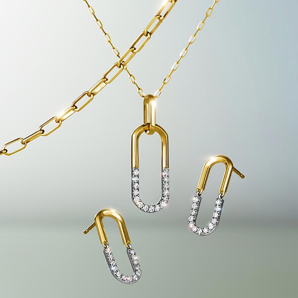 ゴールド×プラチナのコンビネーションとダイヤモンドで象ったクリップモチーフで、移り変わる光の反射と連鎖の繋がりを表現。