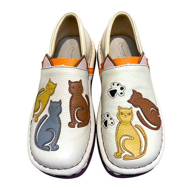 カラフルなパッチワークやかわいいモチーフがついた、履き心地の良いシューズを展開。