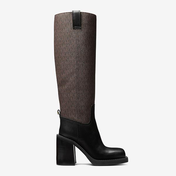 チャンキーなブロックヒールと、乗馬ブーツを彷彿とさせる洗練されたシャフトが特徴のHOUSTON レザー x MK シグネチャー ブロックヒール ブーツ。トレンドのスクエアトゥに、シグネチャーロゴプリントのキャンバスと滑らかなレザーのシックなコントラストが映えるブーツはコーディネートのアクセントにもぴったりです。