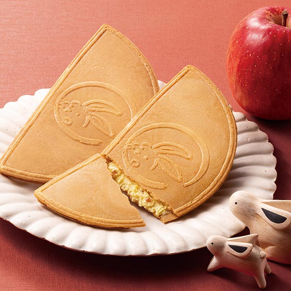 こだわりのパリンッと香ばしい特製ゴーフレットせんべいに、つぶつぶりんごゼリーがアクセントの甘ずっぱいりんご風味のクリームをたっぷりとサンドしました。りんごのおいしい季節にふさわしい、秋冬限定のフレッシュな味わいです。