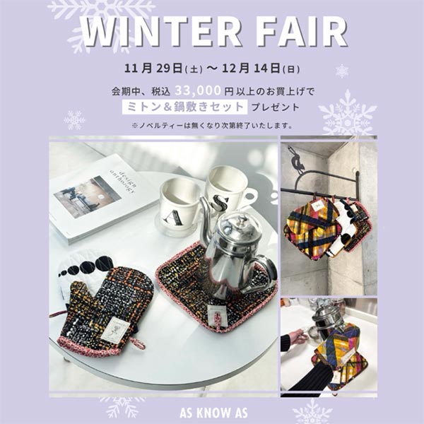 税込33,000 円以上お買上げで「ミトン&鍋敷きセット」プレゼント!